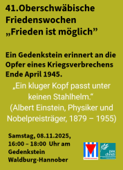 Im Rahmen der 41. Friedenswochen findet auch dieses Jahr das Gedenken an die unmittelbar vor Kriegsende ermordeten zehn Zwangsarbeiter